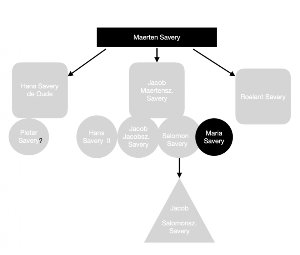 Maria Savery, de dochter van Jacob Maertensz. Savery, werd de moeder van nog eens 3 artiesten: Roelant Roghman, Geertruydt Roghman en Magdalena Roghman. Sinds ze niet de naam ‘Savery’ dragen worden ze hier buiten beschouwing gelaten.