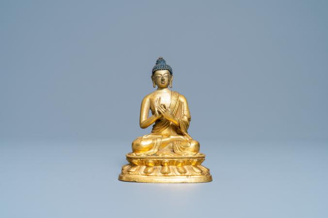 Tibetaanse bronzen boeddha’s kenden tot de 13de eeuw een grote invloed van de stijlkenmerken van de Indische bronzen boeddha’s maar tijdens de Yongle- (1402 – 1424) en de Xuande-dynastieën (1425 – 1435) werden sierlijke Tibetaanse bronzen boeddha’s vervaardigd aan het keizerlijke hof.